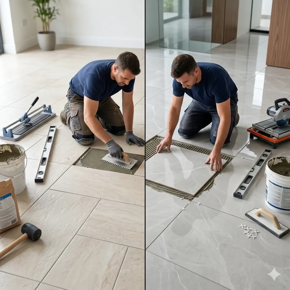 We’ve all seen a "DIY" tile job gone wrong—uneven heights (lippage), cracking grout, or crooked lines. That’s why a professional tile flooring installation is worth the investment. Our process is thorough and never rushed: